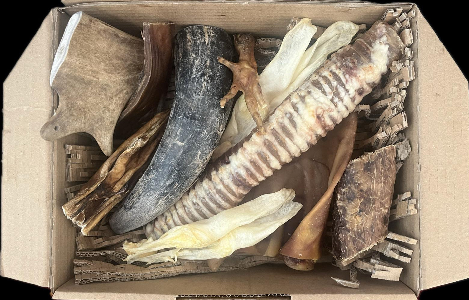 Ce coffret contient une sélection de différentes variétés de friandises séchées, toutes naturelles et de haute qualité, qui ont été soigneusement choisies pour leurs propriétés bénéfiques pour la santé de votre chien. Nos friandises sont riches en protéines, pauvres en matières grasses et ne contiennent aucun additif ni conservateur.