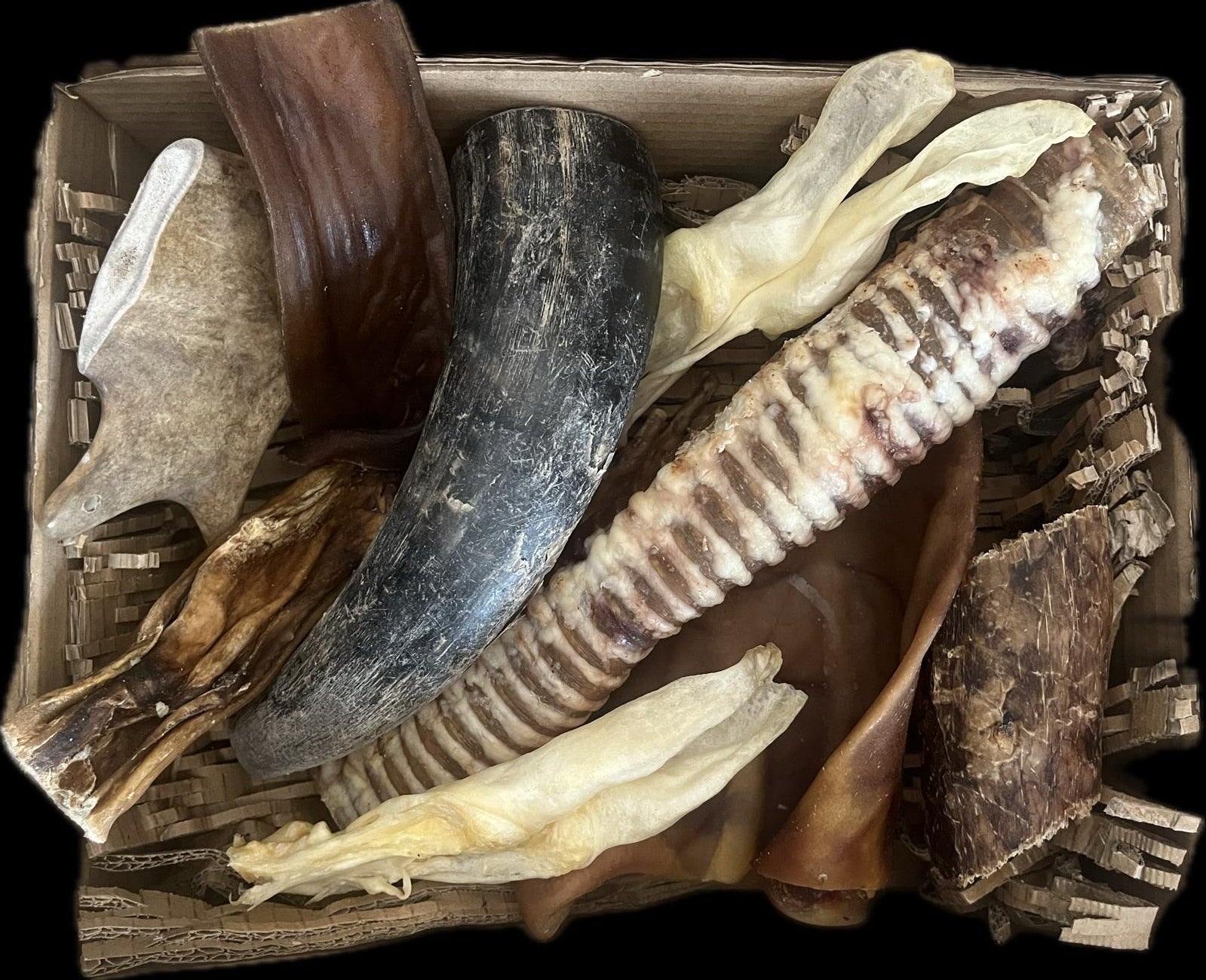 - 1 corne de vache ou de mouton en taille M. (selon les stocks disponibles)